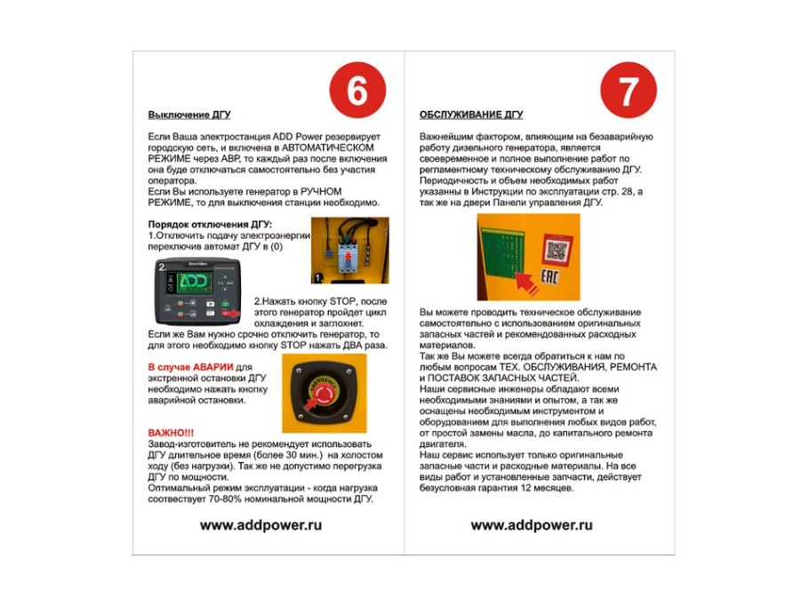 На наших станциях есть QR-код, отсканировав который Вы сможете увидеть подробную инструкцию по установке, монтажу и подключению генератора, так же в комплекте технической документации вы найдете подробную инструкцию по эксплуатации генератора и схему включения электростанции в существующую систему энергоснабжения. Используя эти материалы, даже не подготовленный человек способен все сделать самостоятельно, однако, что бы перестраховаться и быть уверенным в правильности произведенных работ, мы рекомендуем обращаться к нам.